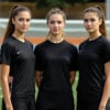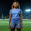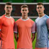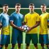 Jugadores de fútbol de IA en acción, con atletas individuales y equipos mixtos en poses dinámicas en el campo de fútbol.